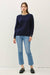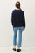Cozy and preppy, this navy pullover sweater with white accents is a fall favorite. Designed with a chunky cable knit texture, crew neckline, and drop shoulders for a relaxed fit. The accent lines around the neck and hem add a polished touch. Hits above the hip—perfect for fall and winter styling.