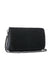 This versatile flap crossbody in black vegan suede combines style and function. Designed with two accordion compartments, an exterior slip pocket, and interior slip and zip pockets for easy organization. Includes both a solid strap and a chain strap for convertible wear—perfect as a chic clutch or crossbody.