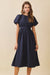 Navy Puff Sleeve Midi Dress
