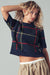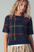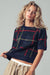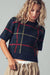 Urban Daizy-Plaid Short Sleeve Knit Sweater Top: Navy / S/M-M/L:3-3-Pink Dot Styles
