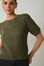 Short Sleeve Cable Knit Sweater: Olive