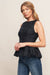 Elevate your look with this black textured woven top, designed with a classic round neckline and sleek sleeveless cut. The peplum hem adds a flattering, feminine shape, while the back zipper closure ensures a polished finish. Perfect for pairing with trousers or skirts for an effortlessly chic day-to-night style.