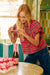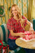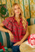 This red tartan plaid top is a festive favorite, featuring a chic V-neckline with ruffle edging for added flair. The short bubble sleeves are adorned with multi-sized faux pearls, creating a stunning contrast against the classic plaid. Perfect for holiday events, it’s both elegant and playfully stylish.