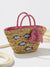 Playful and charming, this seagrass and polyester tote features whimsical sardines on the front for a fun pop. Double handles offer easy carry, while a top zip closure keeps essentials secure. Inside, a red gingham liner with sweet bow and handy inner slip pocket adds extra delight to every outing. 🐟🎀